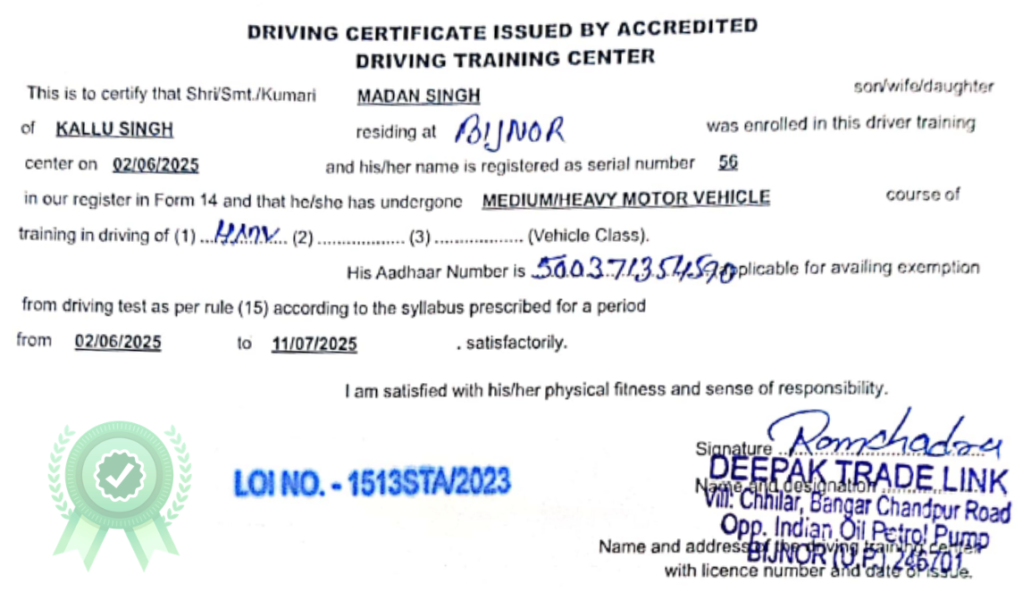 It depends on the vehicle type and centre schedule. Most courses finish in a few weeks to months with both theory and practical sessions.